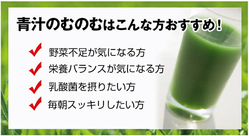 熊本産の大麦若葉、ケールなど国産野菜を15種類、ヒト由来の乳酸菌を1000億個配合。